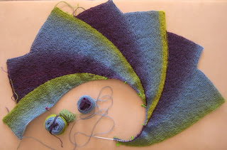 strickt man erst mit Nylonfaden und Restgarn all jene Ma ab, die momentan nicht